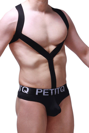 Der schwarze Gürtel ist breit, elastisch und trägt das PETITQ-Logo in weißen Buchstaben.