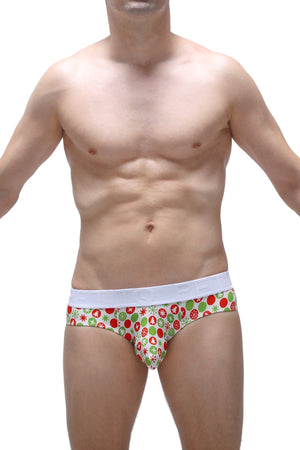 Weißer Slip mit Weihnachtsaufdruck zur Feier der Feiertage. Nahtlose Fronttasche.