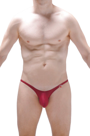 Super low-rise eggplant mini briefs with a high cut at the front and a low cut at the sides. Available in several colors.