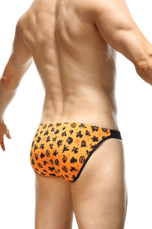 Soyez coquins pour Halloween ! Bikini orange imprimé de fantômes, sorcières et citrouilles. Ouverture à l'avant pour ‚être prêt à dégainer