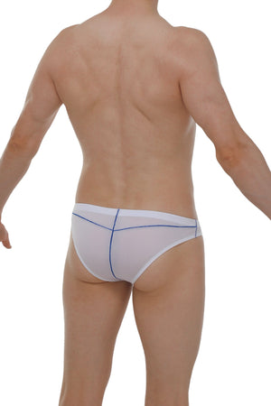Son design arbore une coupe slip classique avec une poche frontale galbée. Il est rehaussé de coutures contrastantes bleu ciel pour contraster avec le blanc qui ajoutent un détail subtil mais marquant au vêtement. Sa taille basse et son tissu doux en font un choix polyvalent et confortable pour le quotidien.