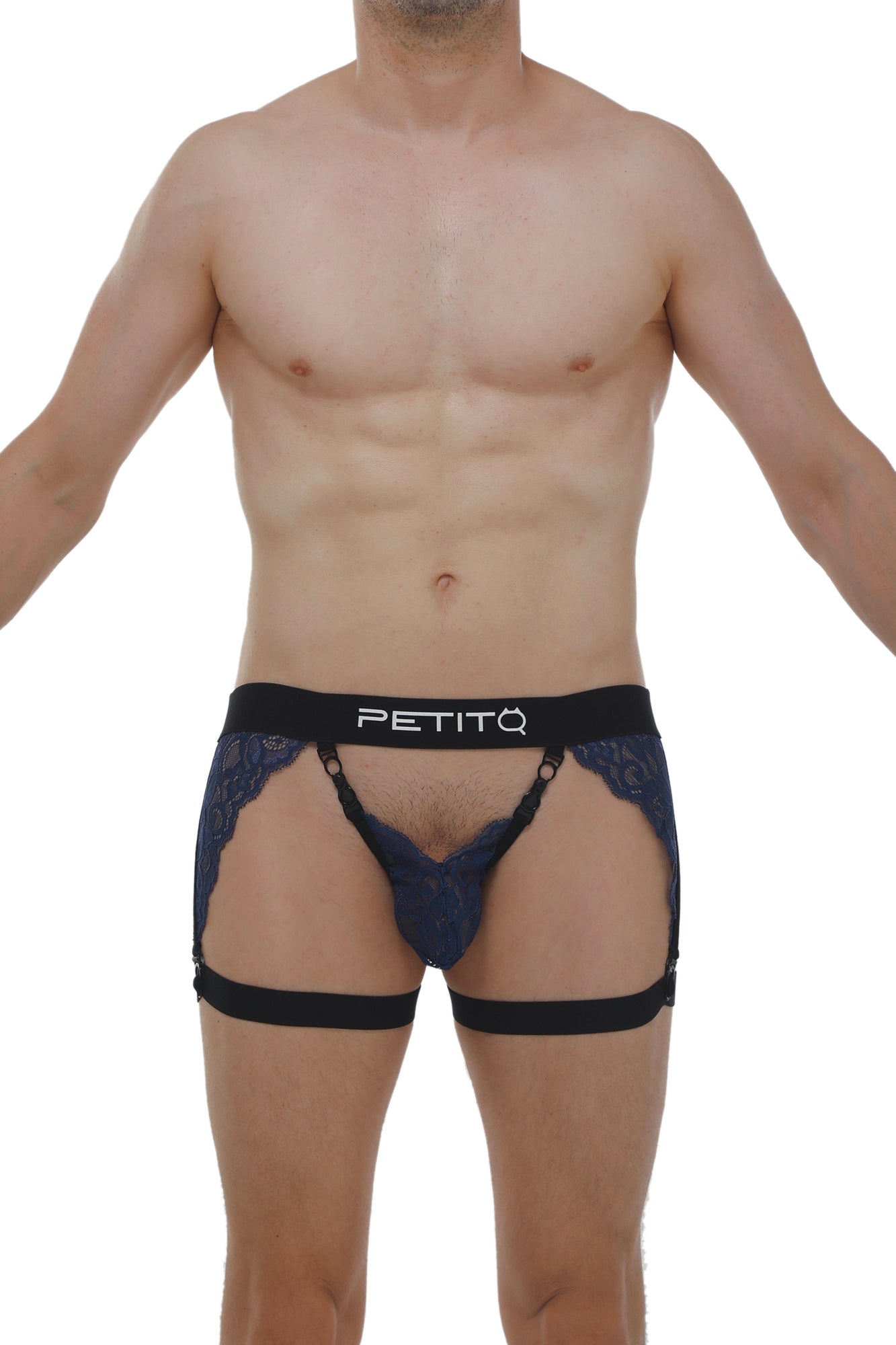 Dévoile un style séduisant et raffiné avec le String Ficelle Lurris PetitQ, un superbe G-string conçu en dentelle bleu marine délicate. Le motif complexe de la dentelle et sa douceur offrent un ajustement confortable mais séduisant.