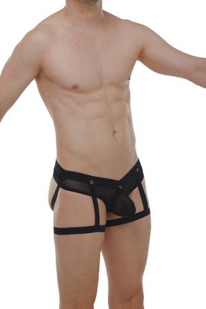 Son design est pensé pour un charme maximal : il inclut un string élastique intérieur détachable pour varier les styles. Tu peux également retirer les élastiques de cuisses (style jarretelles). A l'arrière les autres sangles façon jockstrap, pour une coupe plus minimaliste. Le dos est doté d'un anneau argenté qui maintient les sangles, ajoutant un détail unique et accrocheur. C'est la pièce idéale pour celui qui veut faire une déclaration inoubliable.