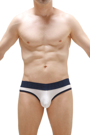 String ficelle blanc confortable en modal à porter tous les jours. Contours et ceinture contrastés bleus foncés.