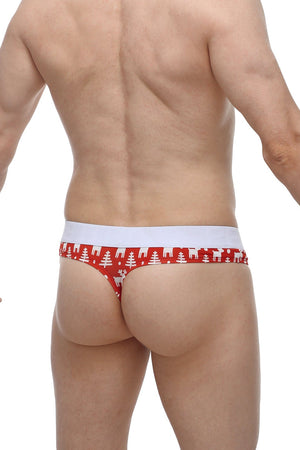 Ce string de Noël pour homme est une pièce de lingerie masculine provocatrice, conçue pour un style festif et une fonction érotique maximale. Il est fabriqué dans un tissu rouge vif orné d'un charmant motif scandinave de rennes et de sapins. La poche est remplacée par un cockring métallique amovible, offrant une exposition audacieuse et un excellent support. Fini avec une bande de taille contrastée blanche, ce string est composé de 95 % de Bambou et 5 % de Spandex, garantissant confort et élasticité. Il est parfait pour ajouter une touche coquine à votre collection de sous-vêtements de fêtes.